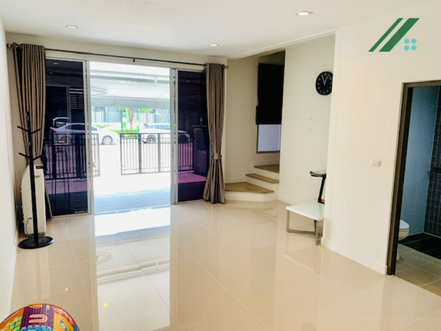 ขายทาวน์โฮม สัมมากร อเวนิว รามอินทรา-วงแหวน (Townhome Sammakorn Avenue Ramintra-Wongwean) ทาวน์โฮม ขนาด 21.40 ตารางวา พื้นที่ใช้สอยประมาณ 200 ตารางเมตร อยู่ถนนเมน ต้นโครงการ วิวโล่ง ตรงข้ามสวน จอดรถได้ 5 คัน แบบบ้านใหญ่ที่สุด มี 4 ห้องนอน พื้นที่ใช้สอยกว้าง เหมาะสำหรับโฮมออฟฟิศหรือสำนักงาน ภายในสภาพใหม่ โครงการใช้หน้าต่างกระจกบานใหญ่เพื่อรับแสงธรรมชาติและระบายอากาศ ต่อเติมหลังคาหลังบ้าน ติดตั้งผ้าม่านและเคาน์เตอร์ครัวบิวท์อินพร้อมใช้งาน