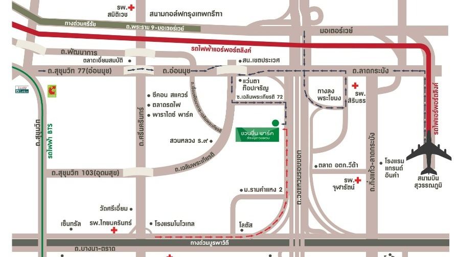 - ใกล้ทางด่วนบูรพาวิถี (กรุงเทพ-ชลบุรี) และ ทางด่วนบางนา