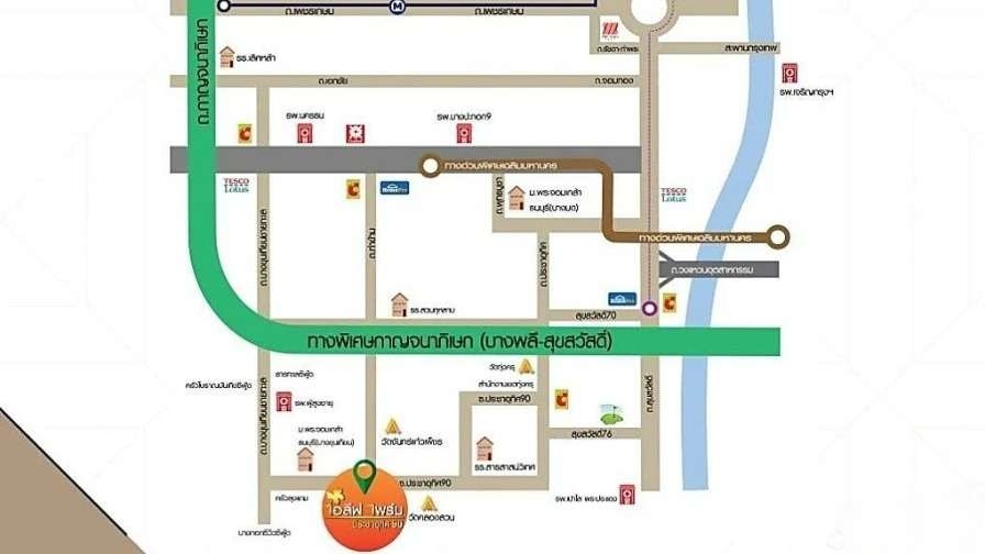 - ใกล้ทางพิเศษกาญจนาภิเษก (บางพลี-สุขสวัสดิ์)