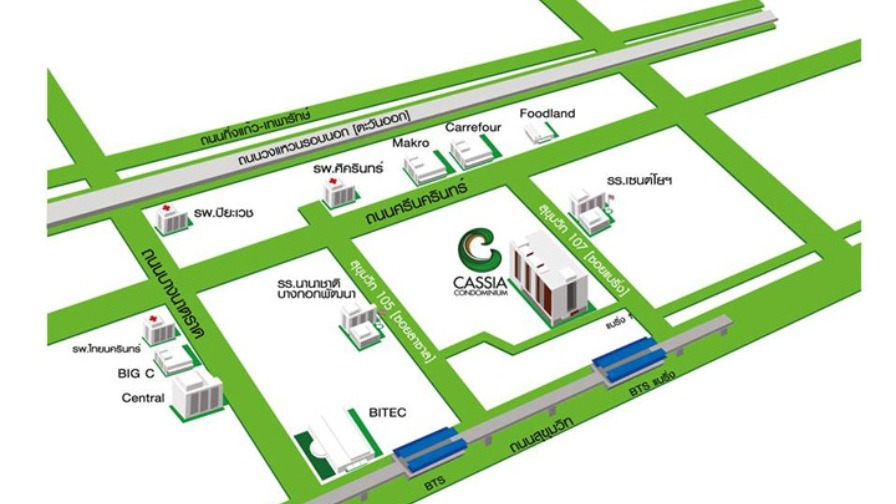 - ใกล้ศูนย์นิทรรศการและการประชุมไบเทค (Bangkok International Trade & Exhibition Centre: BITEC)